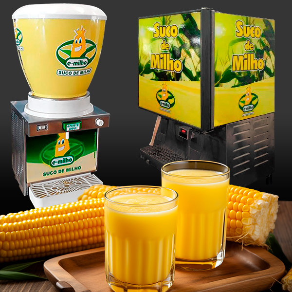 Ofereça o Suco de Milho E-Milho em nossas refresqueiras personalizadas, bags de abastecimento com 10L ou 5L.